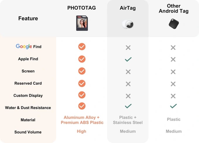 No more worrying about water damage! With its IP65 waterproof rating, PhotoTag is built to withstand rain, spills, and even submersion in water. Whether you’re caught in a storm, near the pool, or outdoors, your belongings stay protected and ready to track.